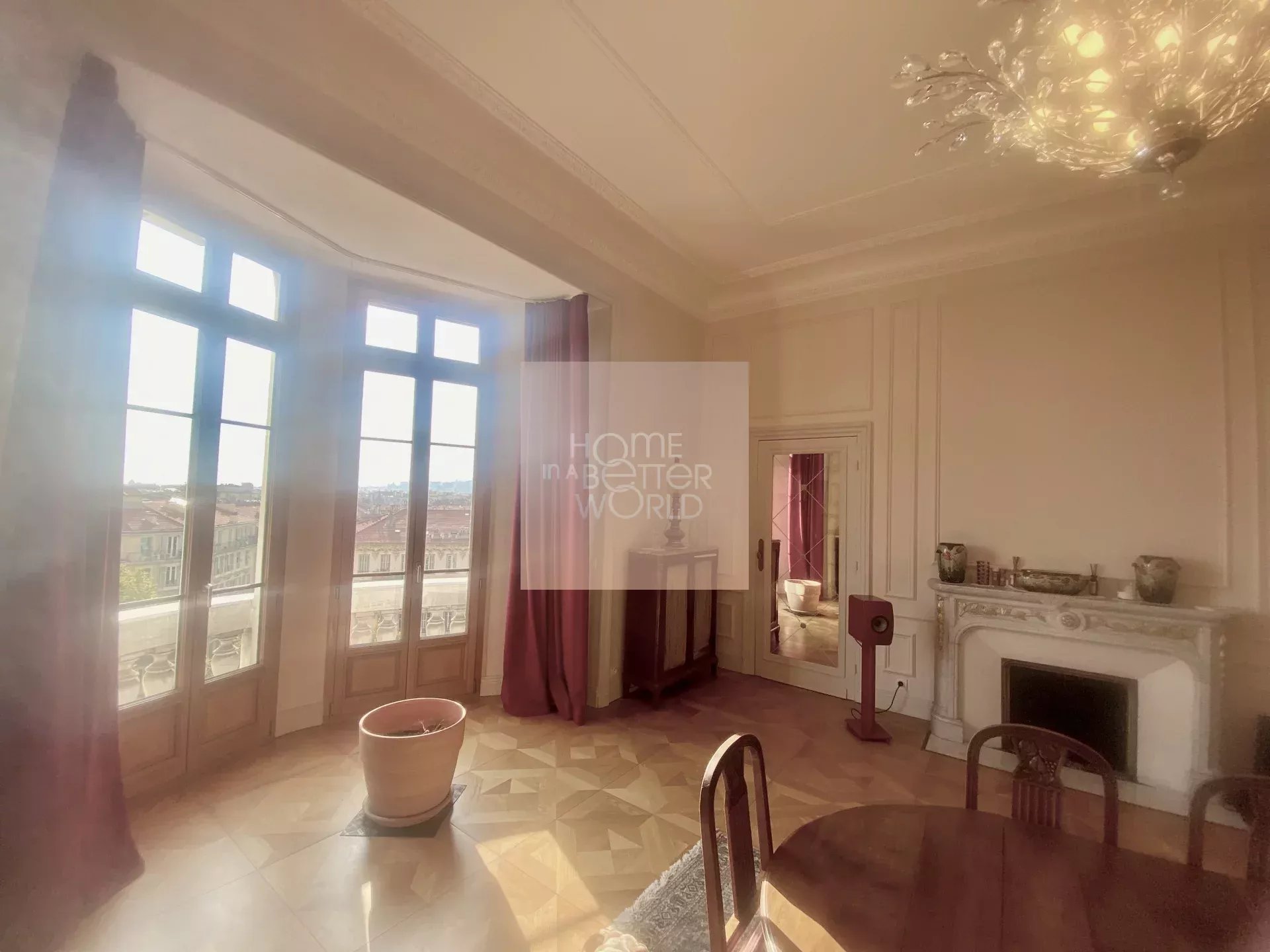 Situé en étage élevé, il se compose d’une entrée, deux salons , d’une cuisine indépendante, de deux chambres avec dressings, chacune disposant de sa salle d’eau privative (l’une avec douche et toilettes, l’autre avec salle de bain, douche et toilettes), s’ouvrant toutes deux sur un balcon offrant une magnifique vue sur la ville de Nice. Une buanderie avec lave main et toilette.