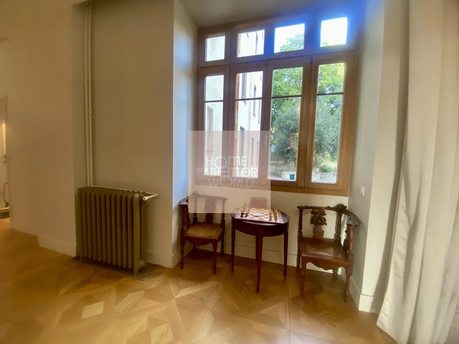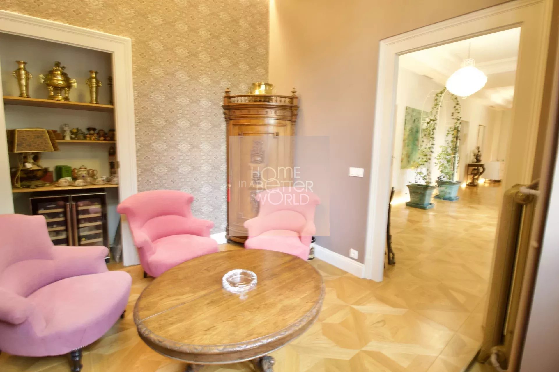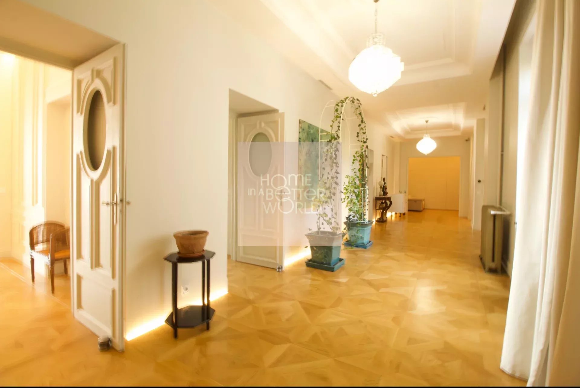 Un bureau/chambre supplémentaire avec buanderie et toilettes, ainsi qu’un séjour majestueux avec cheminée donnant également sur un balcon panoramique, complètent ce bien rare.